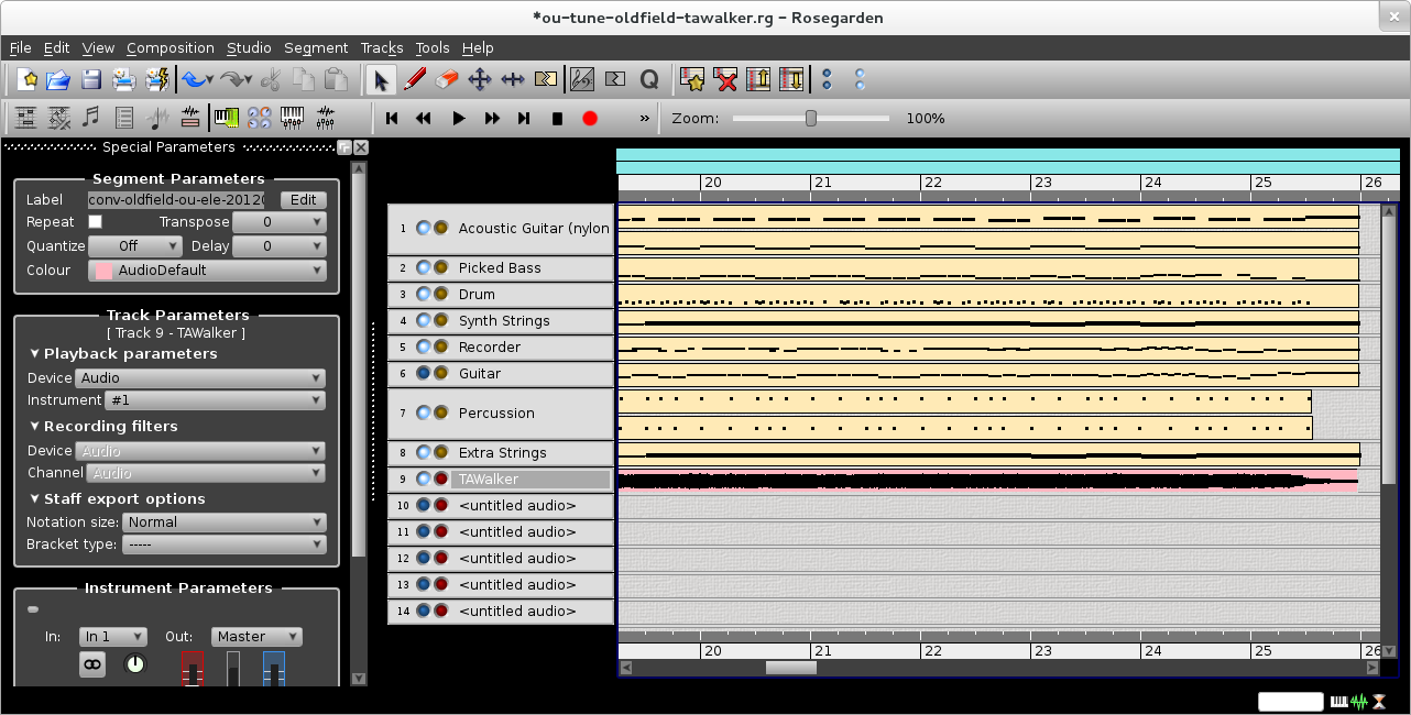 When I finished Tim very kindly recorded a real electric guitar solo for me to add to my track. He supplied it to me as a FLAC file, but the funny thing was I could not find any way of importing a FLAC file into Rosegarden – only .WAV files.
