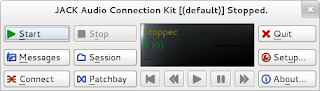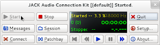 Only, before I could use the virtual synthesiser I needed something to plug it into the computer’s sound hardware. In other words, FluidSynth needs somewhere to send all this audio it's creating. That somewhere is a piece of software called the JACK Audio Connection Kit (JACK). But before I could use JACK I thought I'd find it easier if I something graphical to could control JACK with. So I needed something called QJackCtl – a graphical JACK Control panel.