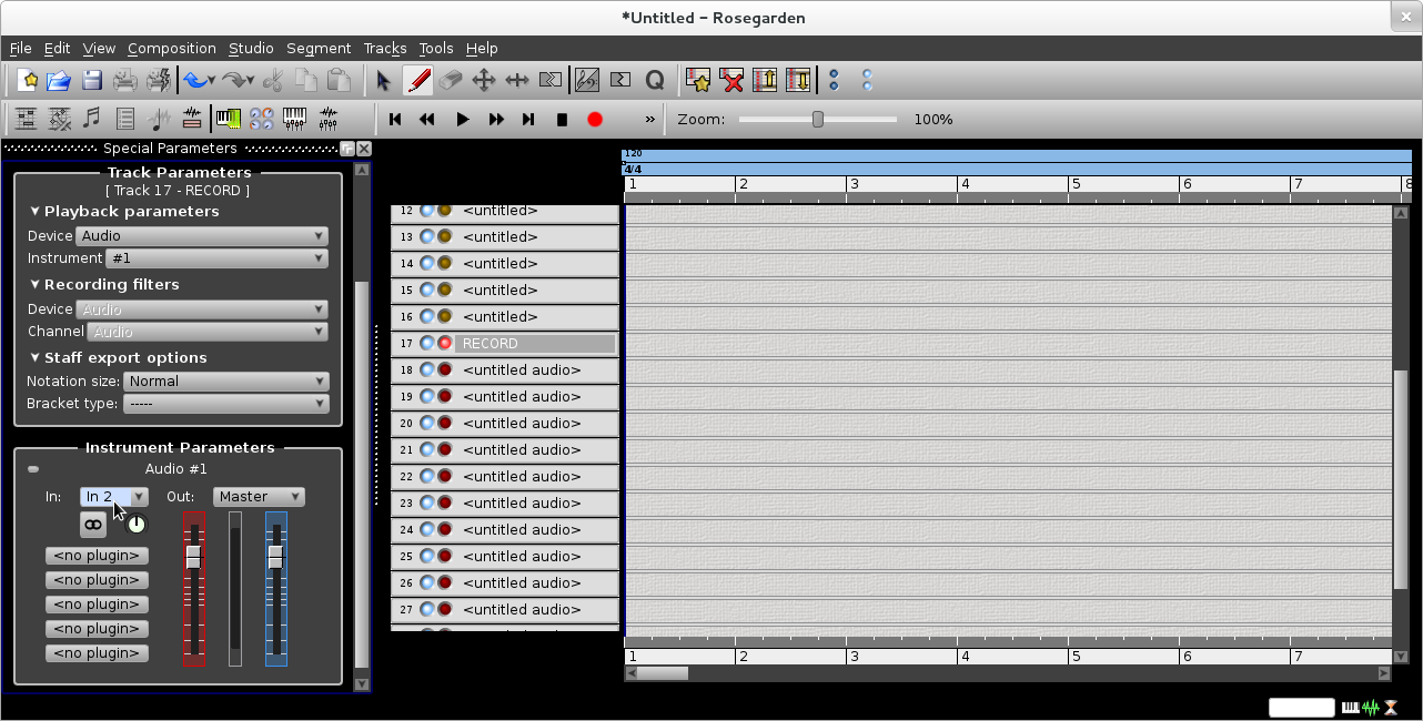 | Rosegarden all set up to record Rosegarden |